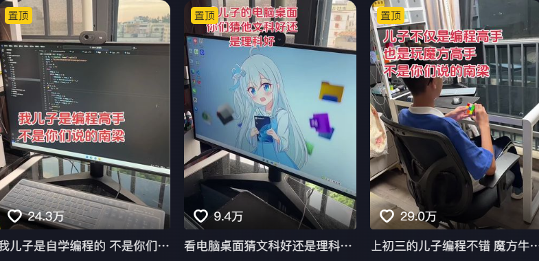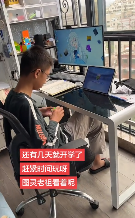 有时候孩子在平板屏幕前,对着教程研究魔方,有时候孩子对着电脑屏幕在自学编程,看得出来这是一个很有计算机天赋的男孩,可当家长第一次晒出学霸儿子的日常视频时,评论区就有不少网友看出了端倪。