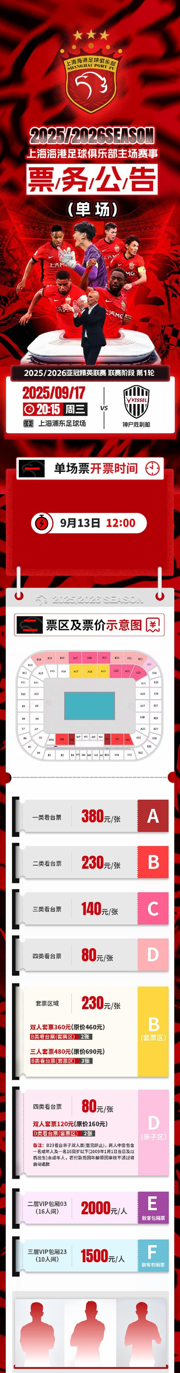 2025/2026亚冠精英联赛第1轮,上海海港vs神户胜利船的比赛将于9月13日12:00开票~